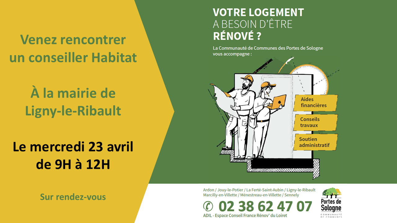 Une permanence se tiendra dans la mairie de Ligny Le Ribault, le 23 avril de 9h à 12h et sur RDV.