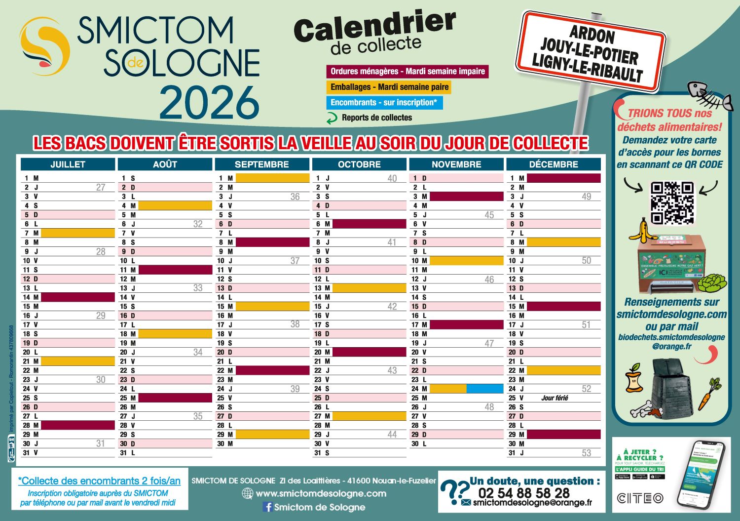 CALENDRIER DES COLLECTES DÉCHETS 2026