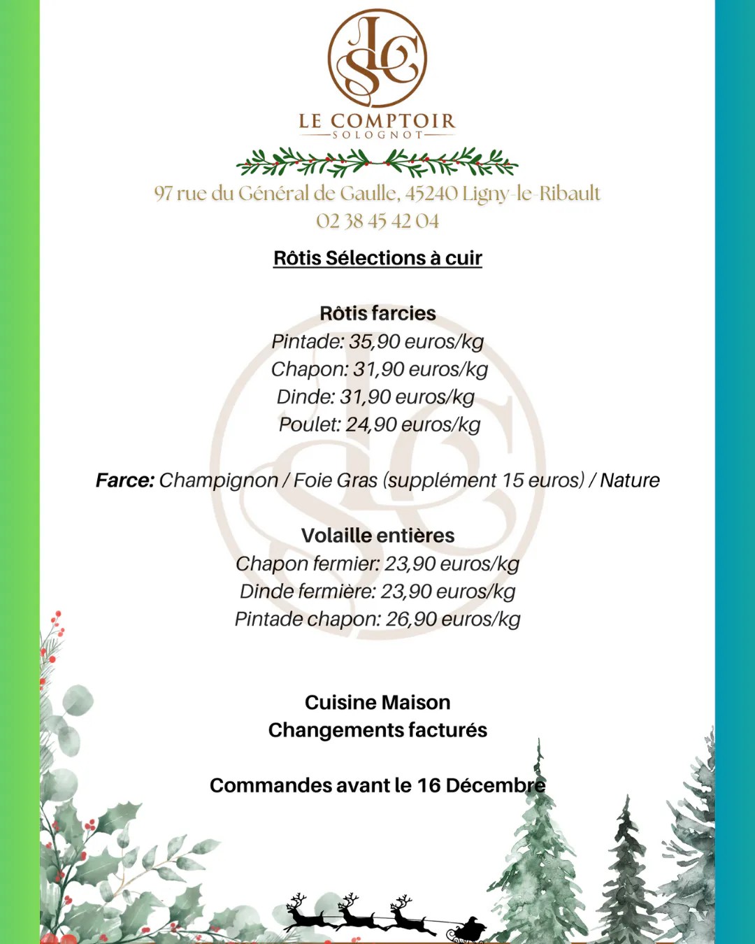 Le marché du jeudi 25 décembre est avancé au mercredi 24 décembre.